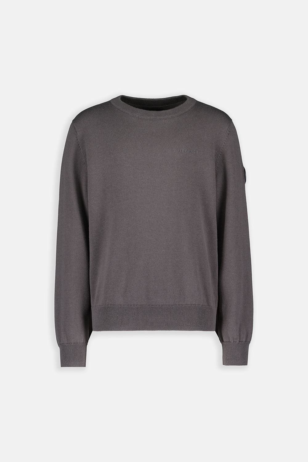 Deze fijngewoven knitwear heeft een ronde hals. De linkermouw is voorzien van een zwarte airforce logo badge en op de linkerborst zit een subtiele rubbere tone to tone 3D print met ‘Airforce’. Deze knitwear is gemaakt van 100% katoen.