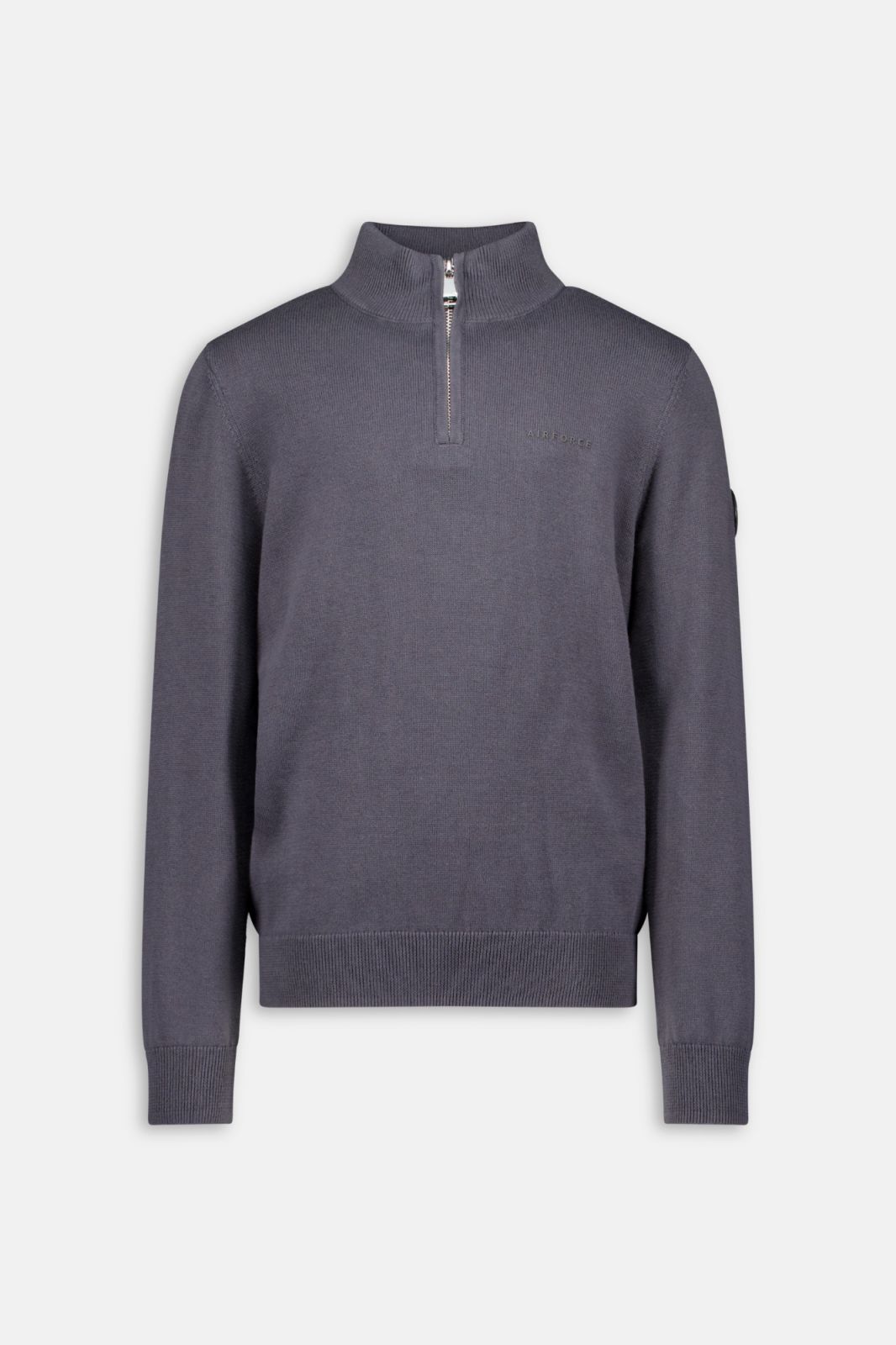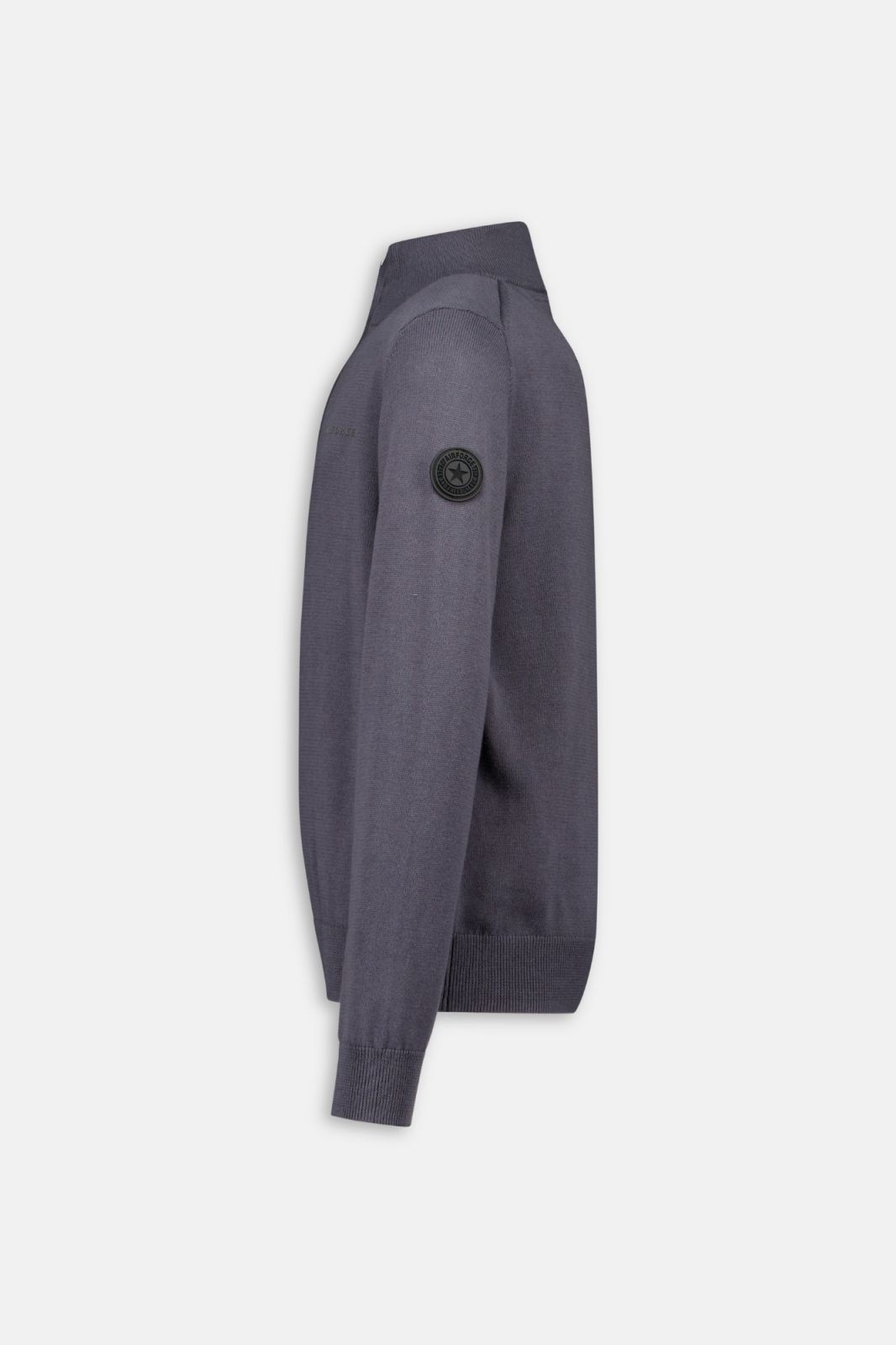 Dit fijngewoven knitwear vest heeft een zilveren ritssluiting tot het midden. De linkermouw is voorzien van een zwarte airforce logo badge en op de linkerborst zit een subtiele rubbere tone to tone 3D print met ‘Airforce’. Dit vest is gemaakt van 100% katoen.