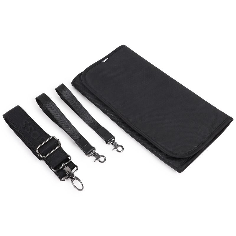 Trek de aandacht van voorbijgangers met de BOSS-luiertas, een chique en praktische bondgenoot voor al je reizen. Gemaakt van verfijnd polyester met een reliëfmonogram, combineert het stijl met comfort. De commode, de vele zakken en de wasbare voering maken het tot het essentiële accessoire voor moderne ouders. Met een afneembare band en kinderwagen-accessoires past deze tas zich aan elke situatie aan en verhoogt het de ouderlijke mode.