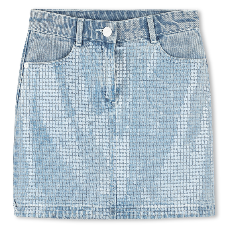 Deze korte rok van DKNY is perfect om een moderne outfit samen te stellen. Hij valt op door de transparante lovertjes, waar kleine meisjes dol op zullen zijn. Hij heeft een verstelbare taille tot de leeftijd van 10 jaar (maat 140). Dit katoenen model heeft een rits- en knoopsluiting aan de voorkant.