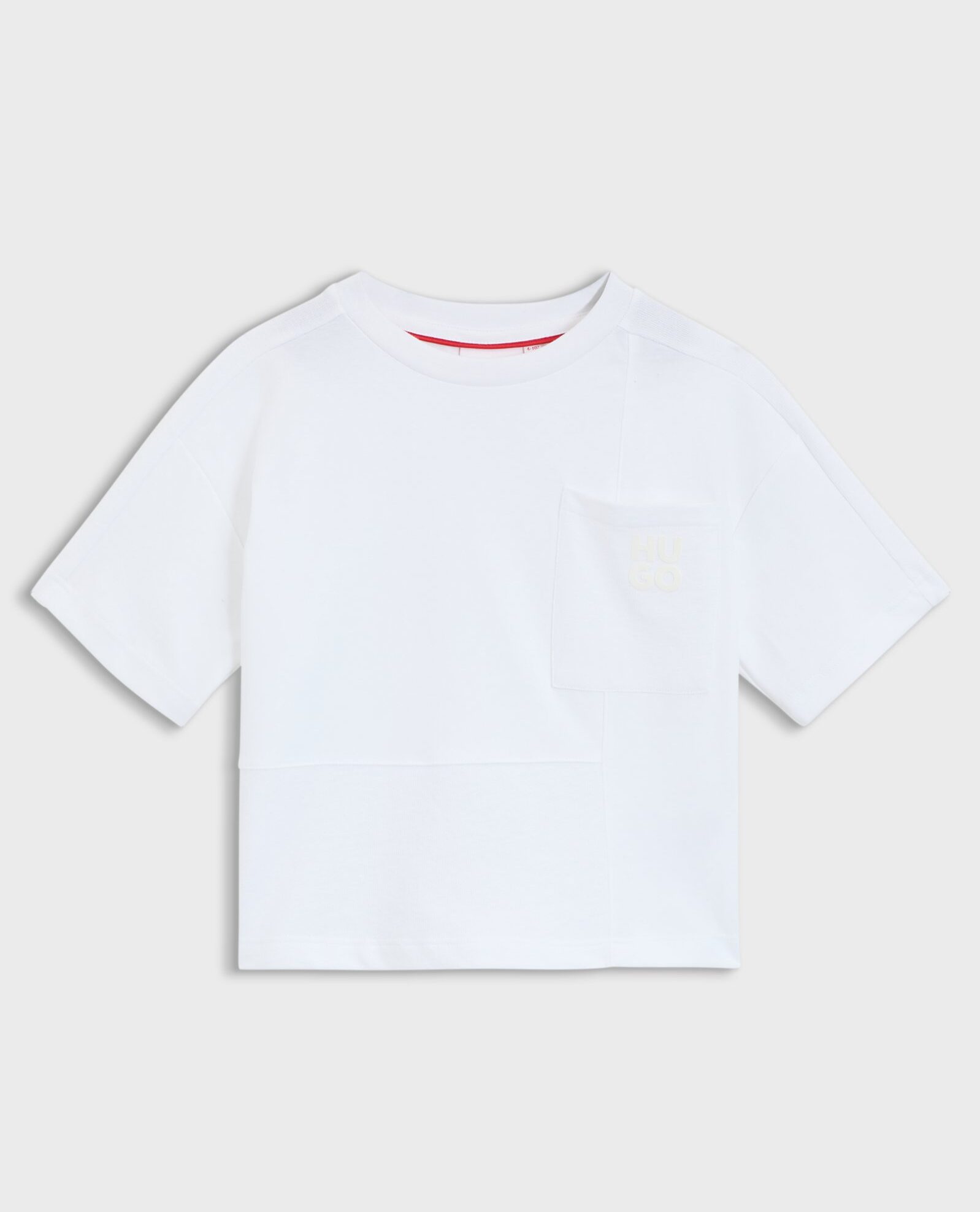 Dit T-shirt van HUGO Kids is uitgevoerd in jersey van 100% katoen, in een mix van verschillende effecten. Het is een creatieve casual optie. Opgezette zak met een tweedelige logoprint.